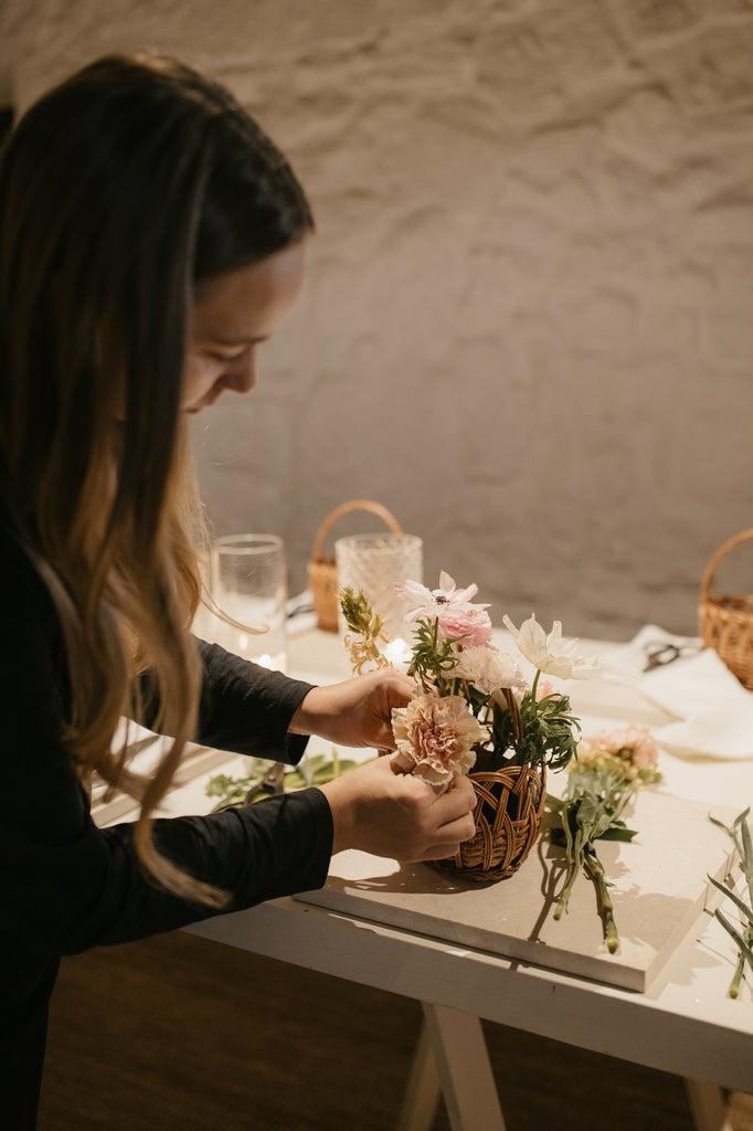 Delavnica ustvarjanja brezčasnega aranžmaja iz suhega cvetja v ročno izdelani ribnčanski pleteni košari.
